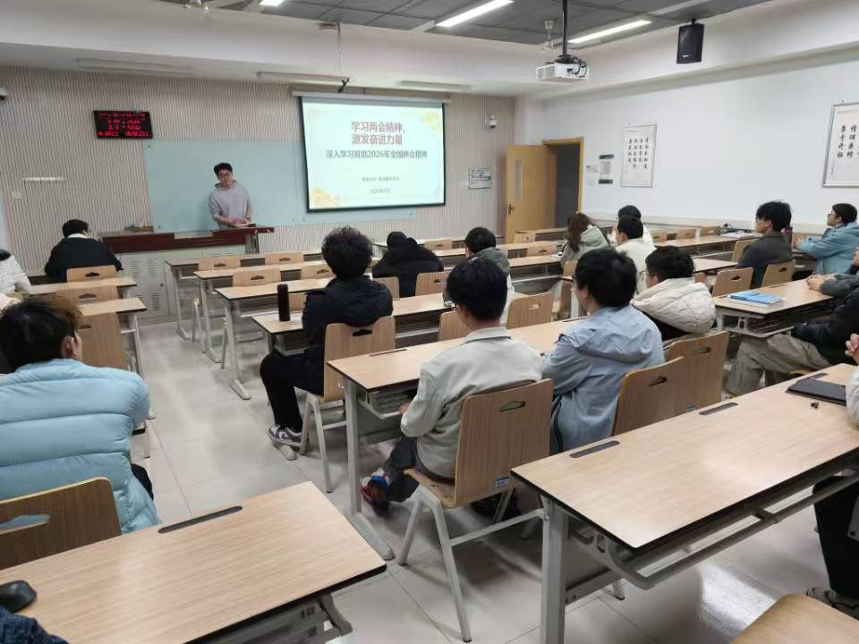 为引导学生关注国家时事,深刻领会2026年全国两会精神中与青年成长息息相关的政策部署,3月13日,机电学院电信2301班团支部相继开展“学习两会精神,激发奋进力量”为主题的政治理论学习活动,2023级辅导员呼逸泽深入参与学习过程,做出详尽的政策解读,团支书许子恒对AI方面做出部分补充。