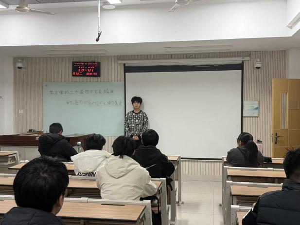 团委老师在总结点评时,对同学们的深刻感悟给予肯定。他结合校领导宣讲精神,向同学们提出三点期望:一是要锚定历史坐标,深刻领悟全会的时代价值与战略意蕴,把学习全会精神作为理论学习的核心内容,做到学深悟透;二是要锤炼过硬本领,珍惜在校时光,深耕专业领域,积极参与实践实训,将知识转化为能力;三是要勇担时代使命,自觉把个人成长融入国家发展大局,在“十五五”新征程中书写挺膺担当的青春答卷。活动最后,班级还发起“践行全会精神,争做时代新人”倡议,鼓励同学们将学习成果转化为实际行动。