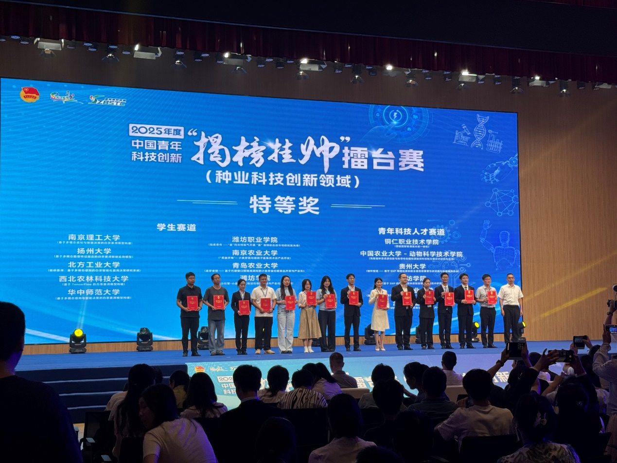 2025年9月26日至28日,中国青年科技创新“揭榜挂帅”擂台赛“种业科技创新领域”终审,在三亚崖州湾科技城创新研学谷圆满落幕。我校两支队伍晋级“白茶萎凋智能决策” 赛道终审,其中由我院教师刘利指导,我院学生闻福祥、翟亮等学生组成的“智析青萎”团队,凭借“基于TensorFlow的白茶萎凋模型构建”的解决方案,荣获大赛特等奖。