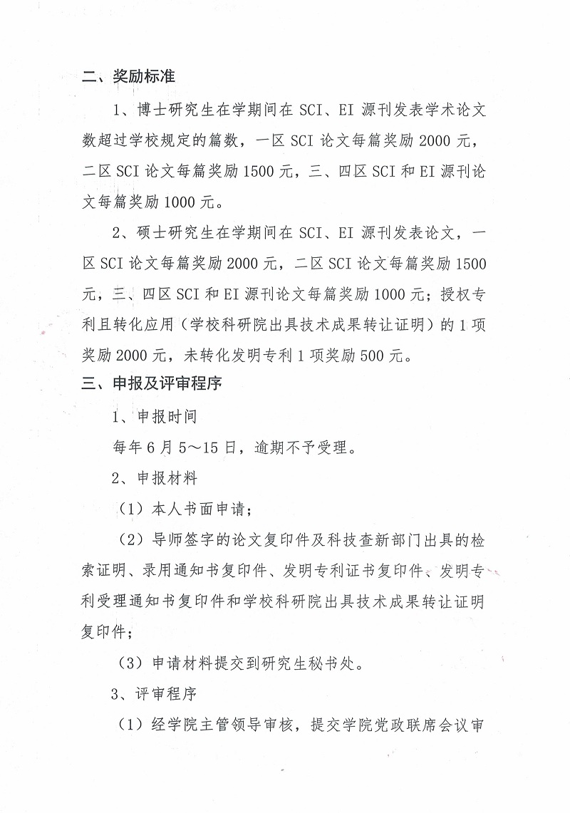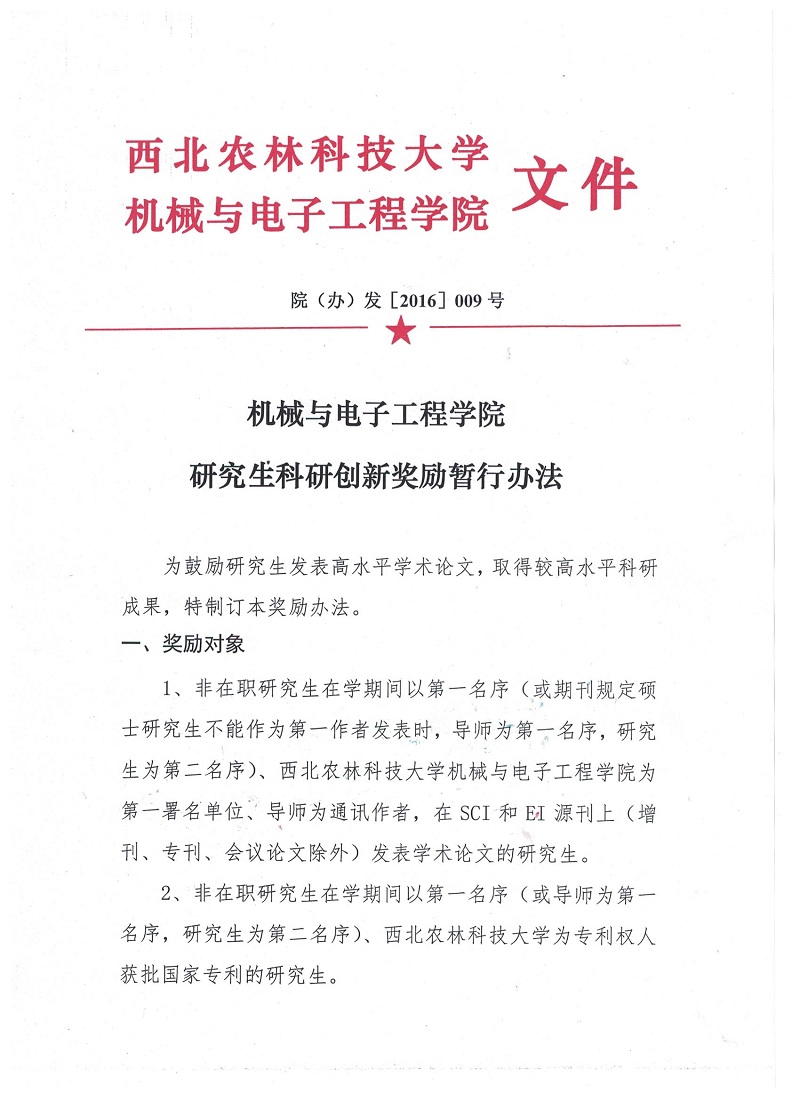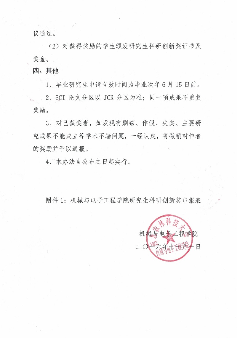 院(办)发[2016]009号机械与电子工程学院研究生科研创新奖励暂行办法