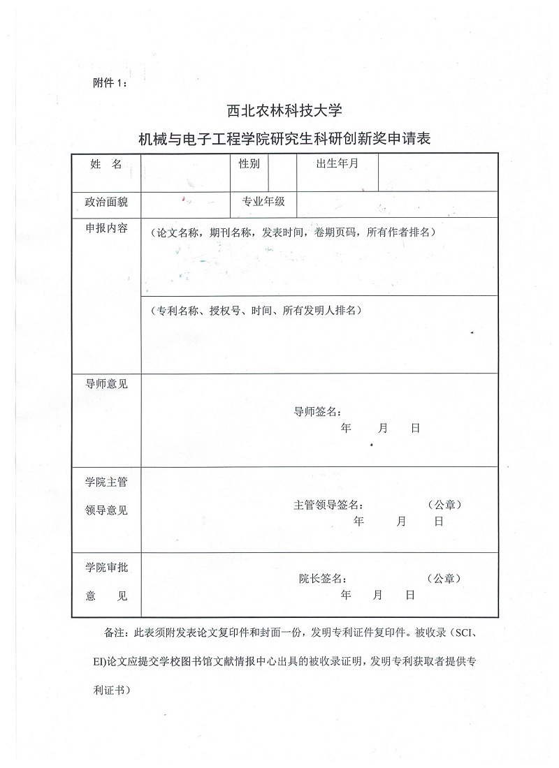 附件:机械与电子工程学院研究生科研创新奖申报表